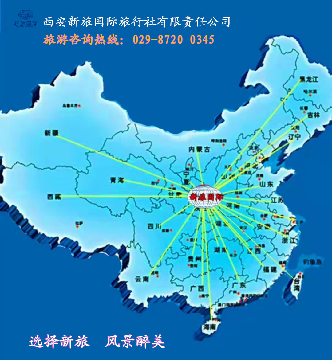 10、立足西安,服務全國。西安新旅國際旅行社位于西安市中心,本公司憑著良好的信譽、形象、務實的工作作風和靈活的經營方式,在競爭激烈的旅游市場中逐步發展,健康成長,并具有自身經營的特色。同樣的價格比質量;同樣的質量比價格。打造最全旅游產品銷售商,讓游客一站式采購使我們的發展思路。公司遵循:以質量求生存、以創新求發展、以市場為導向、以服務為宗旨的經營理念,愿為游客提供全方位、多元化、高層次的服務;愿和各界同仁精誠合作,共創美好!